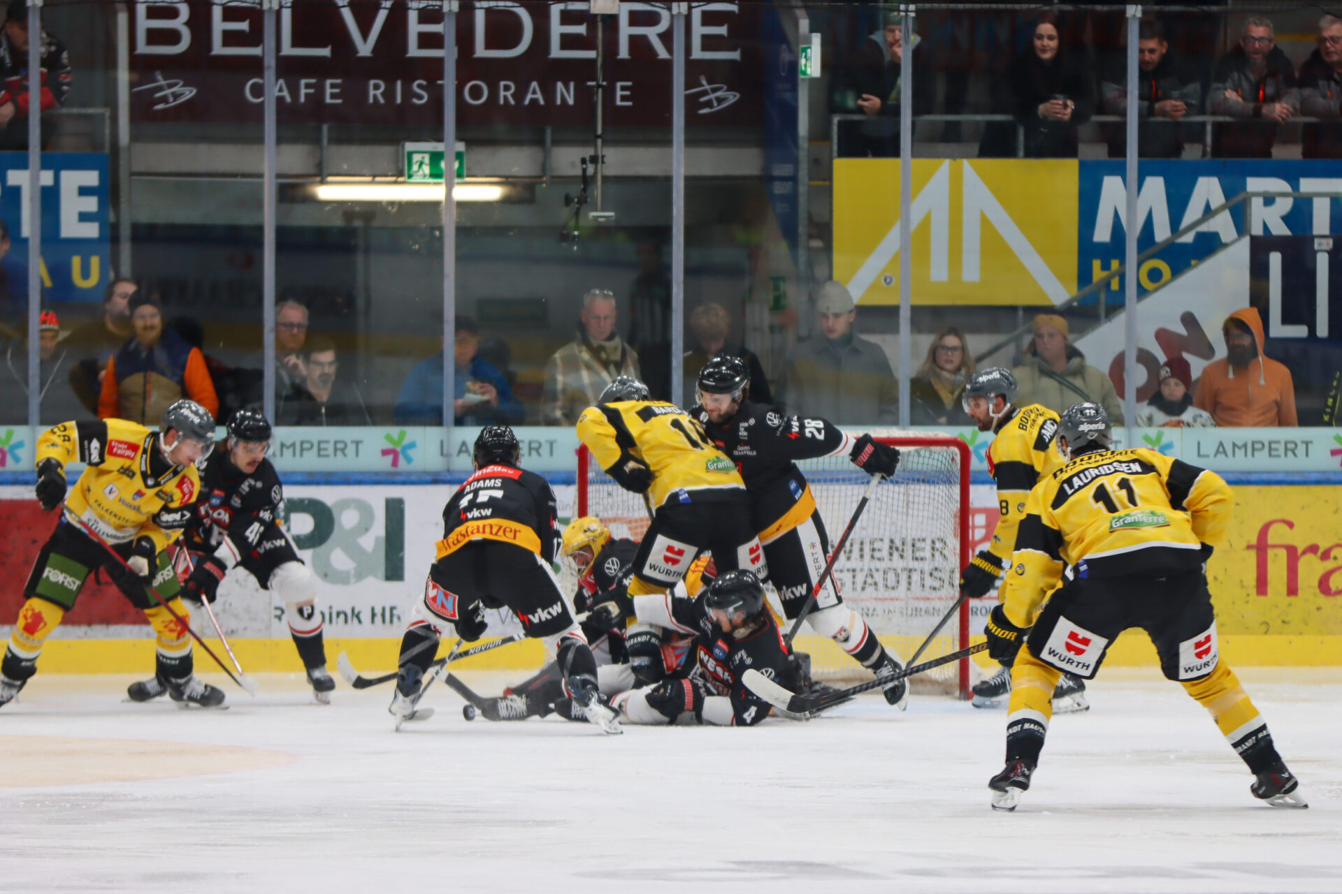 Beide Teams fanden noch weitere Abschlussgelegenheiten vor, eine unübersichtliche Szene vor Caffi konnte von den Hausherren aber bereinigt werden. Ein absolutes Highlight im ersten Drittel lieferte Torhüter Pasquale, der gegen Tschofen einen Monstersave auspackte.