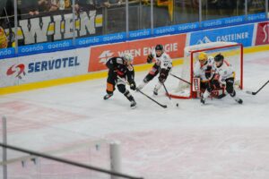 Bei der ersten Station des Auswärts Trips der Vorarlberger in der Bundeshauptstadt, mussten sich die Pioneers erst im Penaltyschießen geschlagen geben. Nach frühem Rückstand drehten die Feldkircher die Partie und führten nach 40 Minuten mit 3:2. Fünf Minuten vor Spielende gelang den Hausherren der Ausgleich und es ging in die Overtime, die torlos blieb. Das folgende Penalty Shootout entschieden die Capitals dann für sich und holten sich den Zusatzpunkt. In einer engen Partie war am Ende auch die bessere Chancenverwertung in Überzahl ein ausschlaggebender Punkt, dass die Feldkircher sich nur mit einem Punkt begnügen mussten.