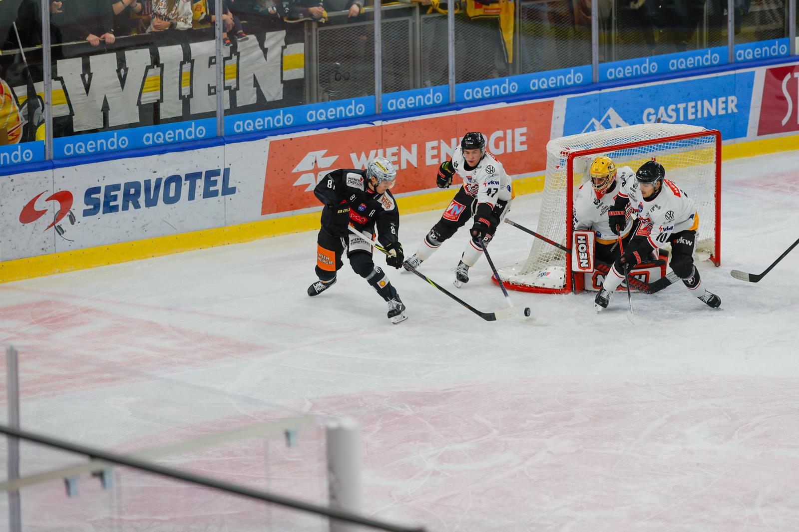 Bei der ersten Station des Auswärts Trips der Vorarlberger in der Bundeshauptstadt, mussten sich die Pioneers erst im Penaltyschießen geschlagen geben. Nach frühem Rückstand drehten die Feldkircher die Partie und führten nach 40 Minuten mit 3:2. Fünf Minuten vor Spielende gelang den Hausherren der Ausgleich und es ging in die Overtime, die torlos blieb. Das folgende Penalty Shootout entschieden die Capitals dann für sich und holten sich den Zusatzpunkt. In einer engen Partie war am Ende auch die bessere Chancenverwertung in Überzahl ein ausschlaggebender Punkt, dass die Feldkircher sich nur mit einem Punkt begnügen mussten.