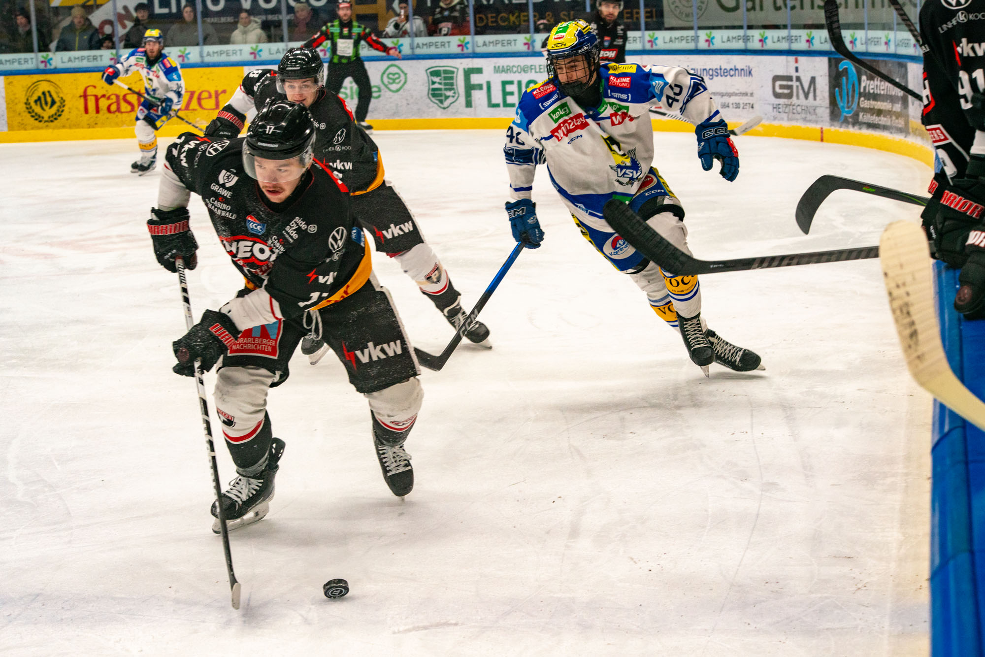 Nachdem am Freitag der KAC zu Gast in der Vorarlberghalle war, kam es heute zum Aufeinandertreffen mit einem weiteren Team aus Kärnten. Gegner war am Sonntag Nachmittag Tabellennachbar VSV.