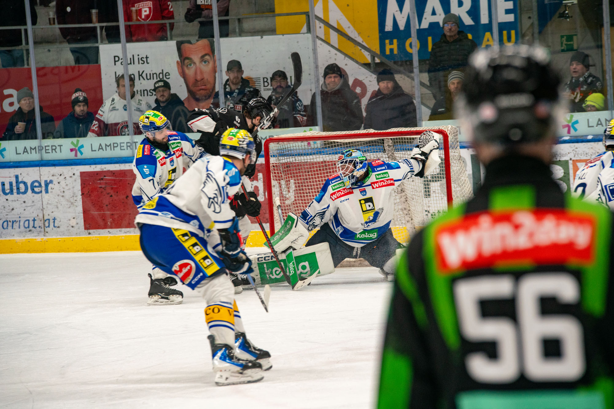 Den deutlich besseren Start ins zweite Drittel hatten dann die Gäste aus Kärnten, Sintschnig fand bereits nach wenigen Sekunden die erste Topchance vor, Madlener war zur Stelle. In Minute 26 gelang den Villachern dann auch die Führung, ein Schuss von Hutchison rutschte Madlener durch und fand den Weg über die Linie.