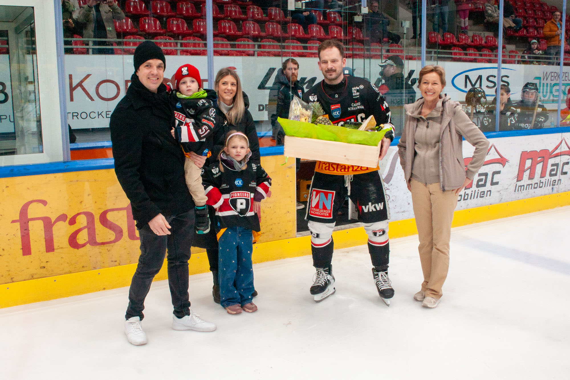 In der letzten Partie der Pioneers in der Saison 2025/2026 in der win2day Ice Hockey League trafen die Hausherren auf den Meisterschaftsmitfavoriten HC Bozen. Vor dem Anspiel der Begegnung wurde Daniel Woger geehrt der mit Ende der Saison seine erfolgreiche Profikarriere beenden wird. Seit 2008 bei seinem Ligadebüt in Innsbruck absolvierte der 38-Jährige Vorarlberger 749 Spiele in der höchsten österreichischen Eishockeyliga. Seine letzten Saisonen absolvierte Woger im Dress der Pioneers, wo er auch seine punktemäßig erfolgreichste Spielzeit absolvierte. In seiner ersten Saison bei den Pioneers 2023/2024 gelangen dem Stürmer in 41 Spielen 30 Scorerpunkte in der regulären Saison. Leider verletzte er sich im Play Off Duell mit Innsbruck und fehlte den Pioneers dann in der Serie gegen den KAC. Insgesamt schnürte Daniel Woger 100-mal die Schlittschuhe im Dress der Pioneers.
